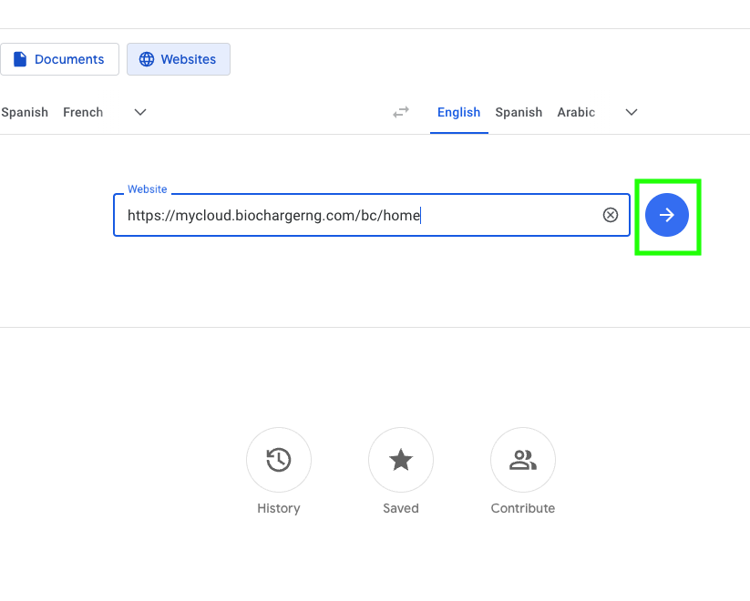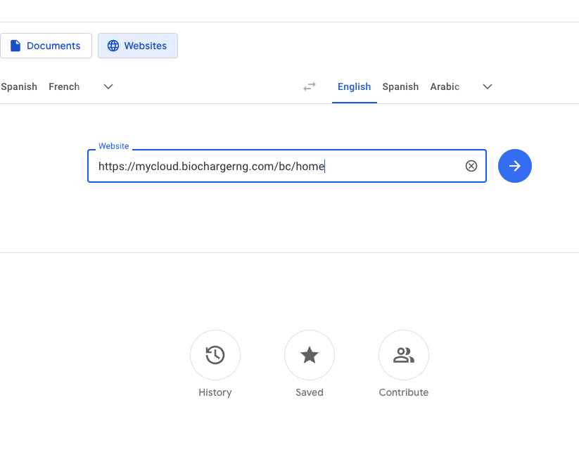 - Copy and paste the URL into the field, then click or tap the blue arrow icon. View your translated web page.