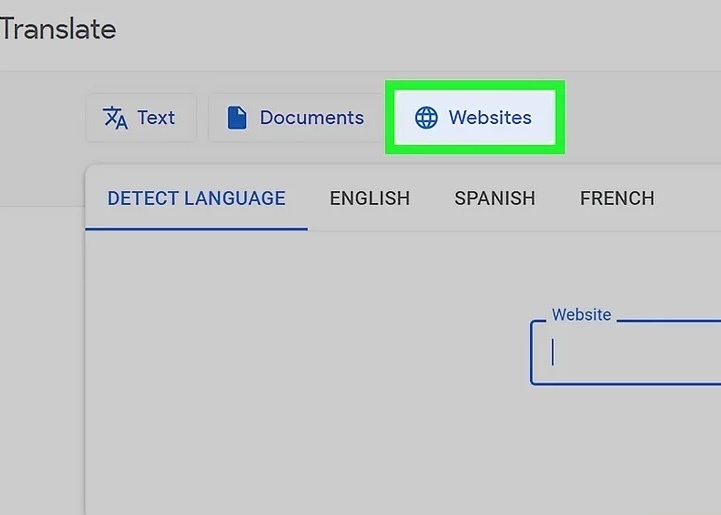 - Go to https://translate.google.com/ in a web browser. Click or tap the "Websites" tab.