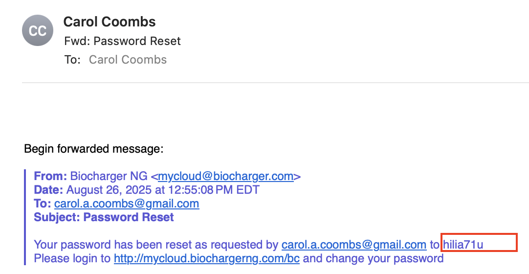 Return to the login page at mycloud.biochargerng.com, and login with your email and new password.