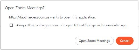 - You may see a box like the one below. Check the box to Always allow and then click open in Zoom meetings.