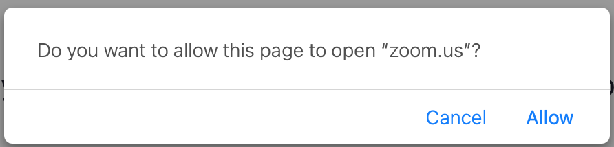 - You may see a box like the one below. Click allow to open the page in Zoom.